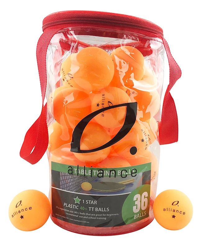Keep the game going when you have the Alliance 40mm One-Star Table Tennis Balls. These tournament quality table tennis balls have a one-star rating and provide increased control and consistent bounce. This pack includes 36 balls for practicing or playing.
