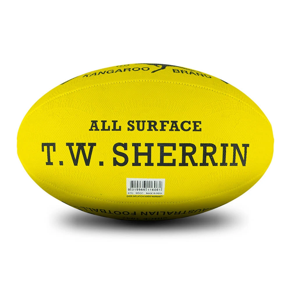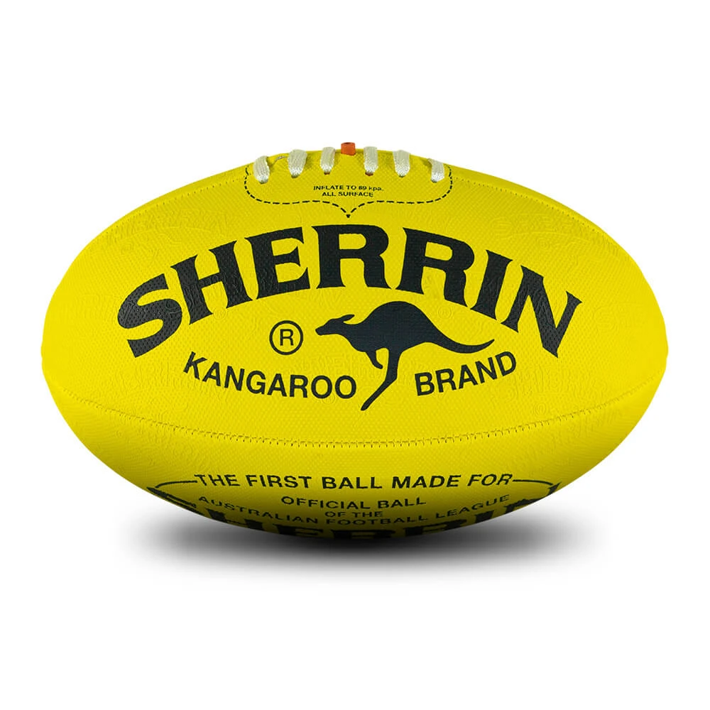 The KB Synthetic football has the Kangaroo Brand look with a durable rubber feel. Designed to perform well in all weather and on all playing surfaces, this Sherrin incorporates a raised and embossed grip to ensure better ball traction and handling no matter the conditions. Makes for a great training ball.